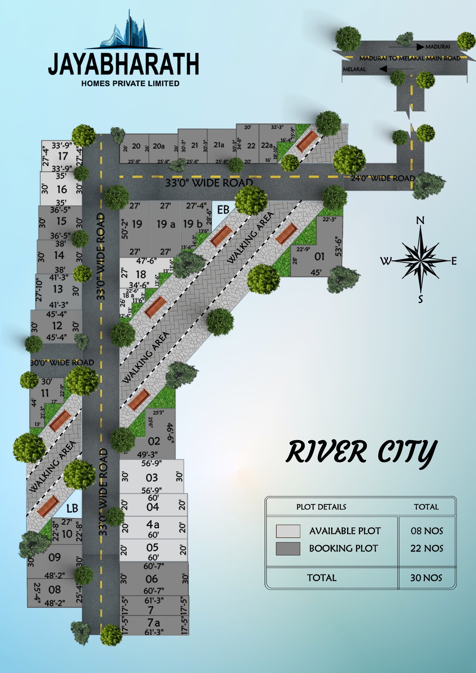 Jayabharath River City is a well-planned residential plotted development offering 30 DTCP-approved plots spread across 2.5 acres in the serene and fast-developing neighborhood of Thuvariman, Madurai. Designed for those who seek both peaceful living and long-term land value, these residential plots are ideal for building your dream home or making a secure real estate investment.